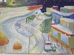Зрителя встречает город в сиянии холодных звёзд, яркой Луны и тёплых окон домов. Рождественские Ангелы приветливо улыбаются людям с небес. Дворняга пес в своей нехитрой шубке и храбрый зайка общаются со снегирями. Лиса, свернувшись, спит в своей норе. Днём холодное солнце в разноцветном ореоле царит над землёй. Не страшен мороз молодым людям, которые мчатся по склонам гор на лыжах и сноубордах и, кажется, обдают зрителя ветром и снегом. Большая серия работ выполнена на черной бумаге светлыми фломастерами. Прекрасные Снегурочки, лесные Девы, зимние Королевны укрывают и украшают замысловатыми легкими кружевами все вокруг – лес, зверушек, дома.