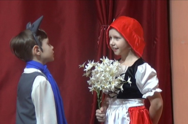 Премьера была полна сюрпризов, открытий и необычных сюжетных поворотов. Главная героиня несла бабушке не только пирожки, но и очки, чтобы лучше видеть! А в лесу она встретила не хитрого голодного волка, а трех милых волчат, которые решили никого не обманывать, а помочь девочке и ее бабушке, чтобы они сами угостили их вкусными пирогами. Волчата старались: подметали двор, носили дрова и воду для бабушки, дарили цветы Красной шапочке и провожали её через лес! «Как хотите, чтобы поступали с вами, так поступайте и вы со всеми!» – золотое правило этой милой сказки. Короткая история в исполнении первоклассников была наполнена дружбой и заботой всех друг о друге. В ней никто не пострадал, даже петушок, которого хотела утащить лиса, да волчата не дали!