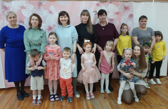 В празднично украшенном зале звучала музыка, а нарядные гости и дети занимали свои места. Для мам и бабушек прозвучало нежное поздравление от ведущей, трогательные и смешные стихи от ребят. Малыши дружно пели праздничную песню «Про бабушку», им активно помогали родители, ведь нашим замечательным певцам всего 3-4 года.
