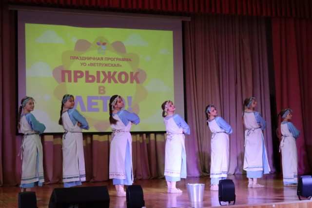 Отчётная праздничная программа детских коллективов учебного отделения «Ветлужская» «Прыжок в ЛЕТО!» прошла 21 мая в актовом зале СОШ № 112. Ребята продемонстрировали результаты своего труда и творческие достижения завершающегося учебного года. Аплодисментами наградили юных артистов любимые и любящие зрители: мамы и папы, бабушки и дедушки, сестренки и братишки, друзья. Гостями нашего праздника были администрация и сотрудники Центра детского творчества.