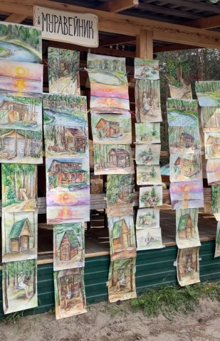 Каждый день ребята осваивали новые локации базы, выполняя различные пленэрные задания, которые отличались по сложности в зависимости от года обучения в школе художественного творчества «Цветень». Живописные места на берегу Оби, пирс, лес с высокими соснами, озера, на которых квакали жабы и проживали бобры, проделки которых можно было увидеть вокруг, и конечно же, непосредственно жилая территории базы-шале «Янтарь», где ребята писали различные постройки, пейзажи и наброски. За день юные художники выполняли одну-две больших работы, а также наброски акварелью и графичными материалами.